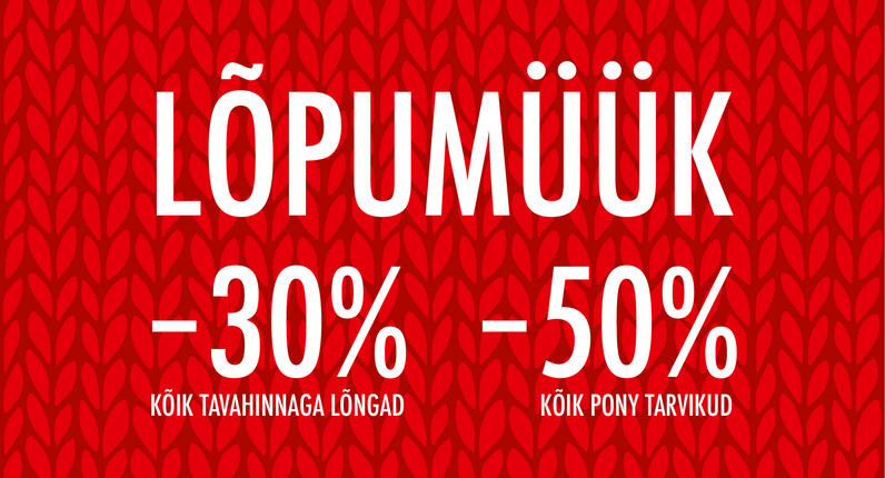 Oleme pühade ajal avatud järgmiselt:Tartu Kaubamaja lõngapood23. detsember 10:00-21:0024. detsembril 10:00-19:0025. ...